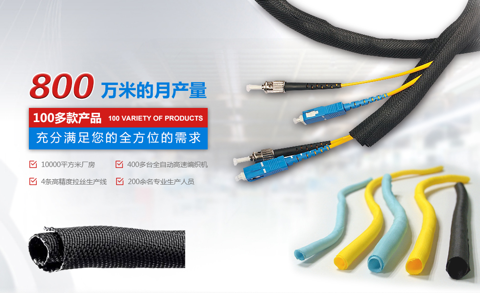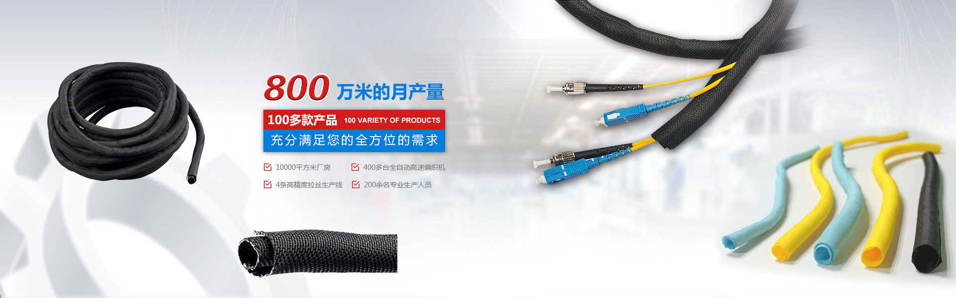 自主設(shè)計、研發(fā)、規(guī)模化大型生產(chǎn)企業(yè) 擁有廠房10000平米,400多臺全自動。高速編織機四條高精度紡絲生產(chǎn)線,員工200余人,月產(chǎn)量800萬米,中國最大絕緣保護套管生產(chǎn)企業(yè)之一。